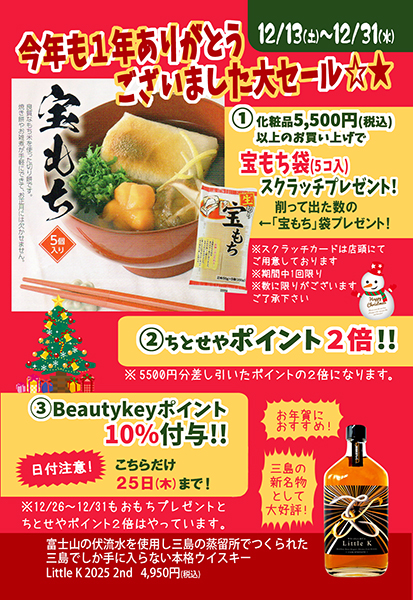 ●化粧品5,500円(税込)以上、おもち袋スクラッチプレゼント!!